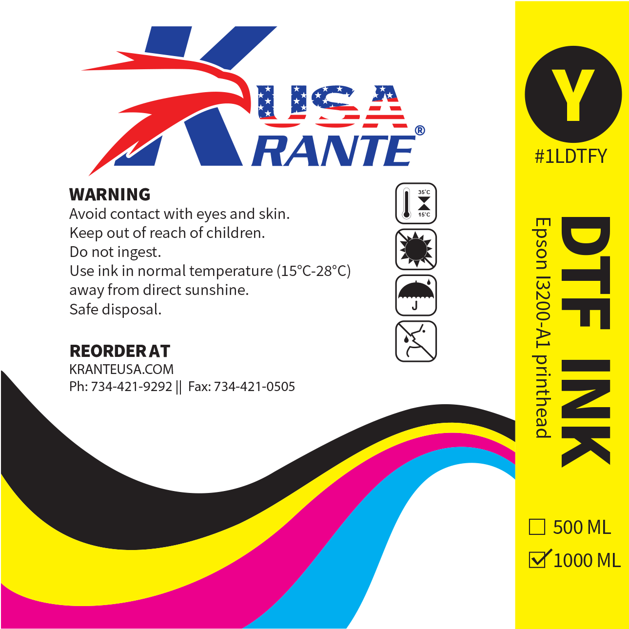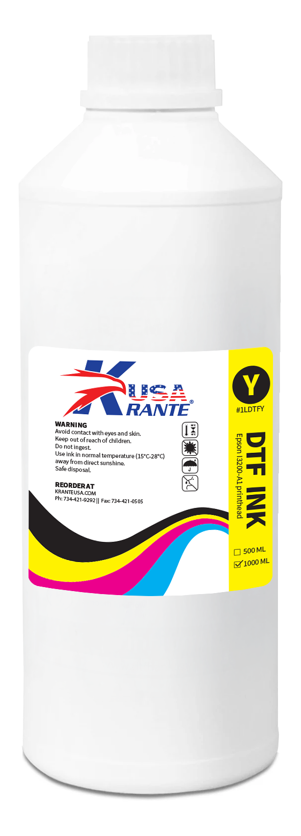Premium DTF Ink in Yellow is the ultimate choice for achieving bright, vibrant, and high-quality prints on a variety of fabrics. Tailored for professional Direct-to-Film (DTF) printing, this non-toxic, water-based ink ensures exceptional color performance and durability. Whether you're designing t-shirts, hoodies, or custom merchandise, this yellow ink delivers stunning results every time. With a reputation for reliability, Premium DTF Ink has become the preferred choice for professionals worldwide.